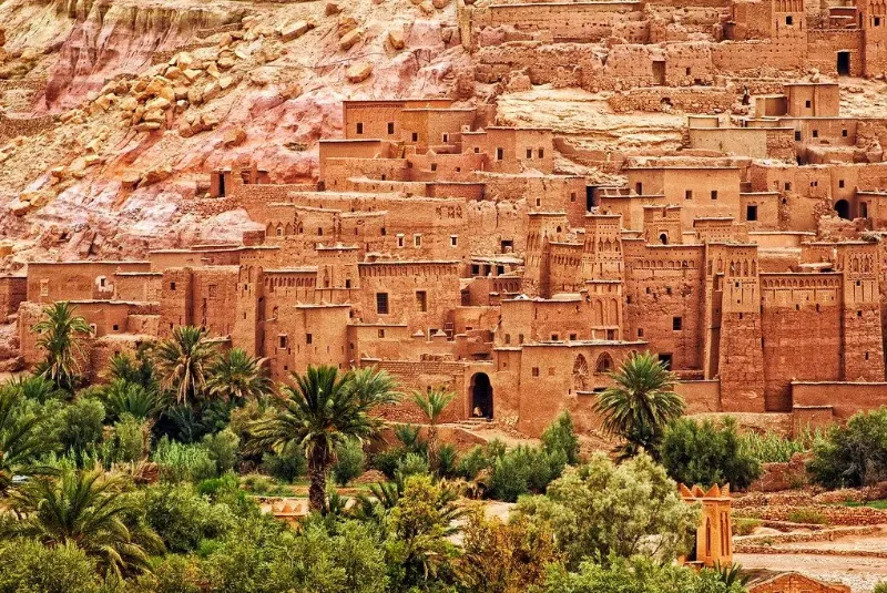 After breakfast, we will begin the desert tour. You will cross the High Atlas Mountains, through the country’s highest pass, Tizi n’Tichka (2,260m altitude). Then, you will pass through interesting villages until you reach the Kasbah of Ait Benhaddou (declared a UNESCO World Heritage Site in 1987), a fortified complex within a walled town that you’ll surely recognize as it has been the setting for many famous movies. Continuing our route, we’ll pass through Ouarzazate, then take the Road of a Thousand Kasbahs towards Skoura. From there, we’ll cross the Valley of Roses to finally arrive at the Dades Valley. Dinner and accommodation at a hotel located in the Dades Gorges.